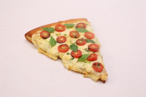 Premium Italian sourdough base adorned with pizza sauce, cherry tomatoes, English cheddar, fresh basil, and aromatic herbs for an enduringly delightful flavor experience.